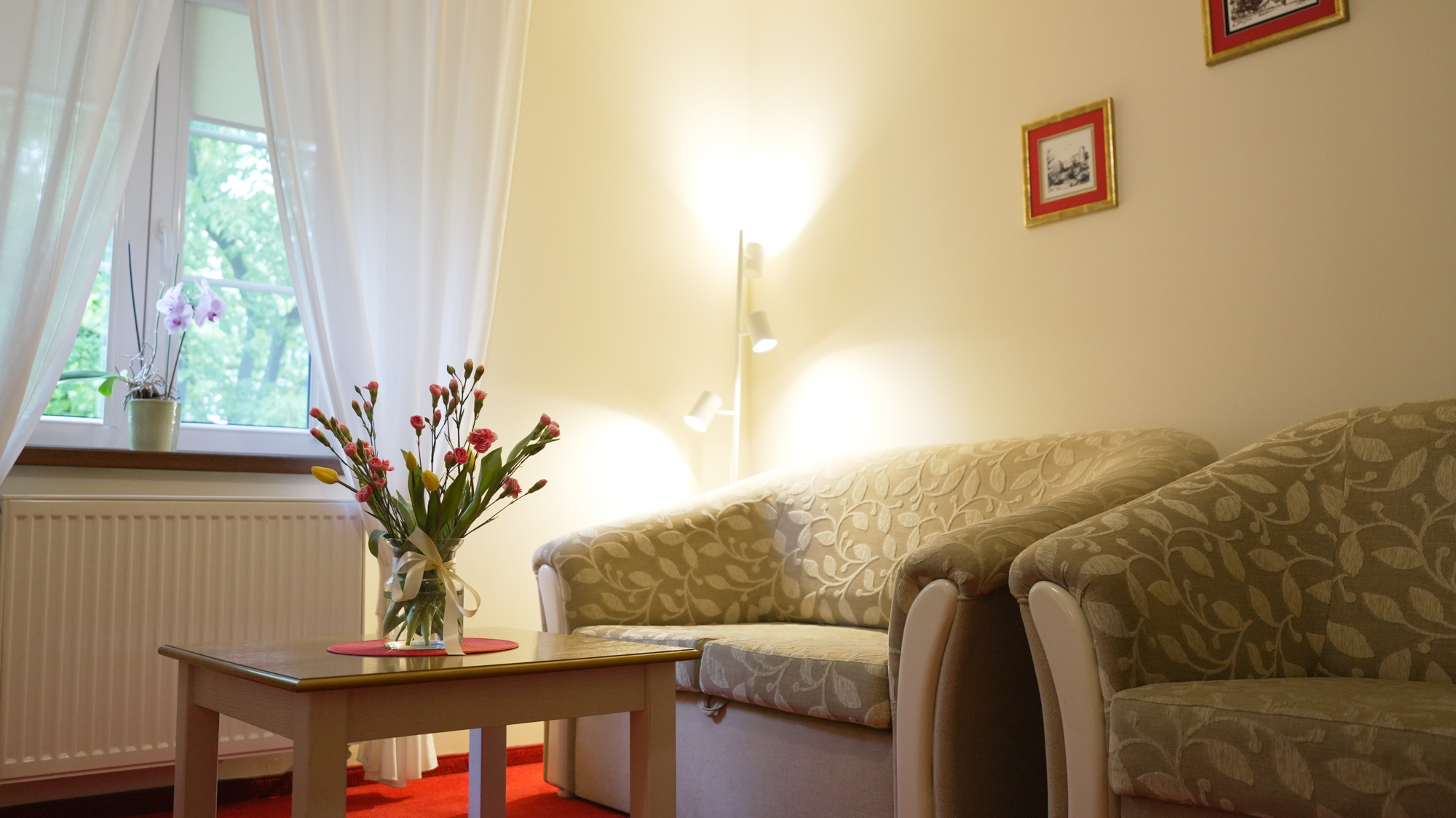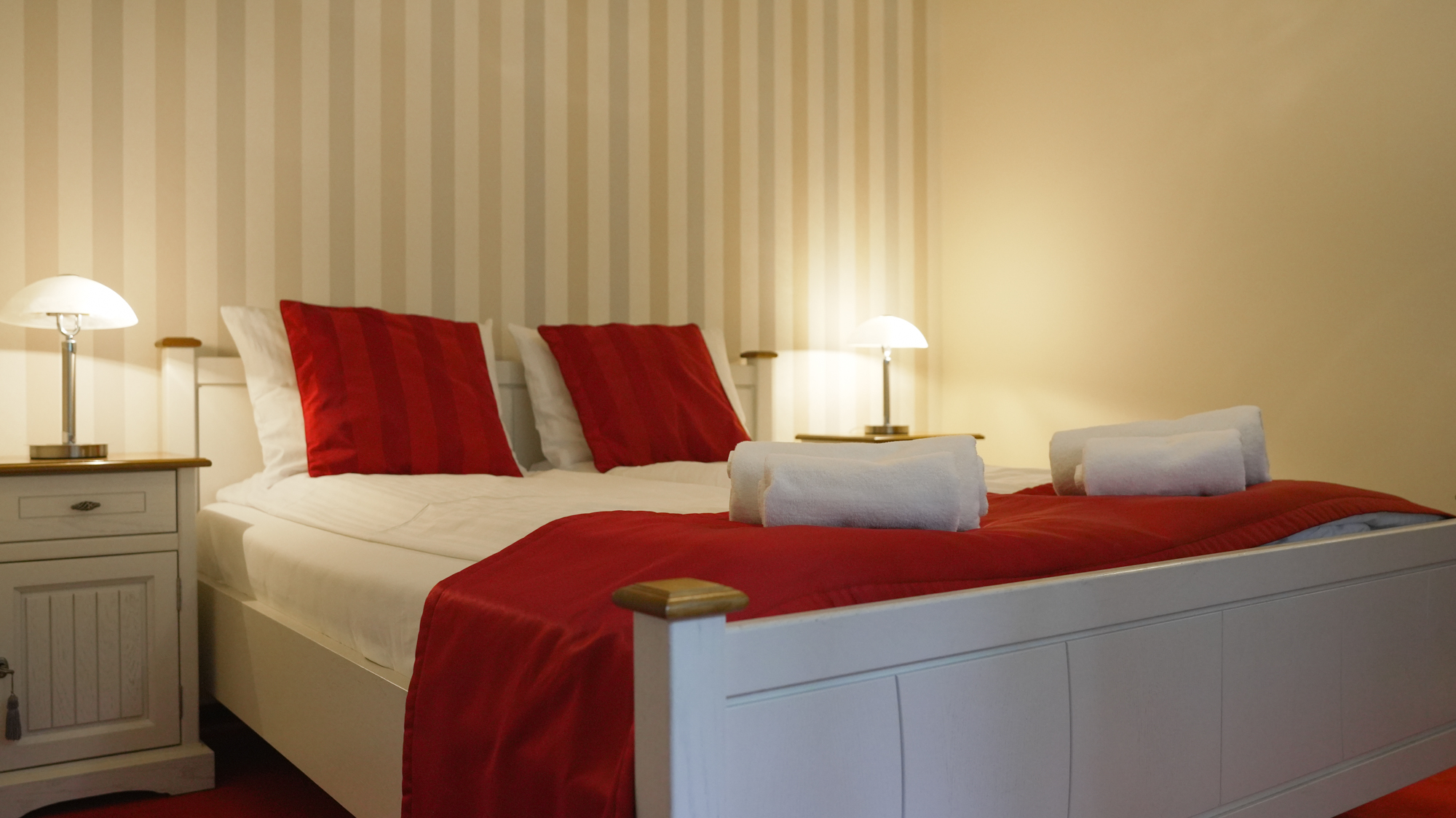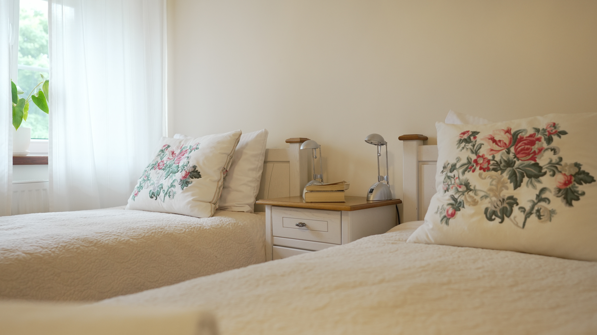 W Serokomla oferujemy 11 komfortowych pokoi, w tym 2 przestronne apartamenty, które zapewnią wygodę i prywatność. Każdy pokój wyposażony jest w łazienkę, a przytulny wystrój sprawia, że poczujesz się jak w domu. Pokoje są przestronne i jasne, a ich okna oferują piękne widoki na okoliczne tereny, w tym majestatyczny Zamek Janowiecki.